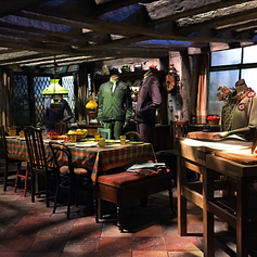 This is the only part of the tour where time is limited and is guided. Whilst wandering around the hall, taking in all the precise detailing, the tour guide recites information regarding the set, props and costumes within the Great Hall. Dotted around the room there are all 4 houses with their emblems and iconic costumes from each house. There are two large tables, running from one end of the set to the other, which are dressed with never-ending feasts. The feasts are replicated on different feasts depending on what time of year you visit. Heading up the Great Hall is the Teacher's Table, which is set at the top of the hall, with a few of the recognisable professors costumes including Alastor 'Mad-Eye' Moody, Sybill Trelawney, McGonagall, Dumbledore, Snape and Hagrid.