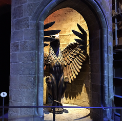 Once you have finished exploring the Back Lot, you will head into another hanger and are greeted by Bathilda Bagshot and some Inferi's. In this hanger you learn more about the creature effects where animatronics, models and special effects are all showcased. Throughout the whole of the creature effects department a video is played, hosted by Warwick Davis, crammed full of information on how some of the creatures were made and revealed some secrets! For example Hagrid isn't played by Robbie Coltrane, no... he's played by a humongous rugby player in a remote control head. I felt like my whole childhood had been a lie finding this out! After finding that traumatic secret out you are guided into another room where the video continues, where you will find another Buckbeak and a colossal Aragog suspended from the ceiling.